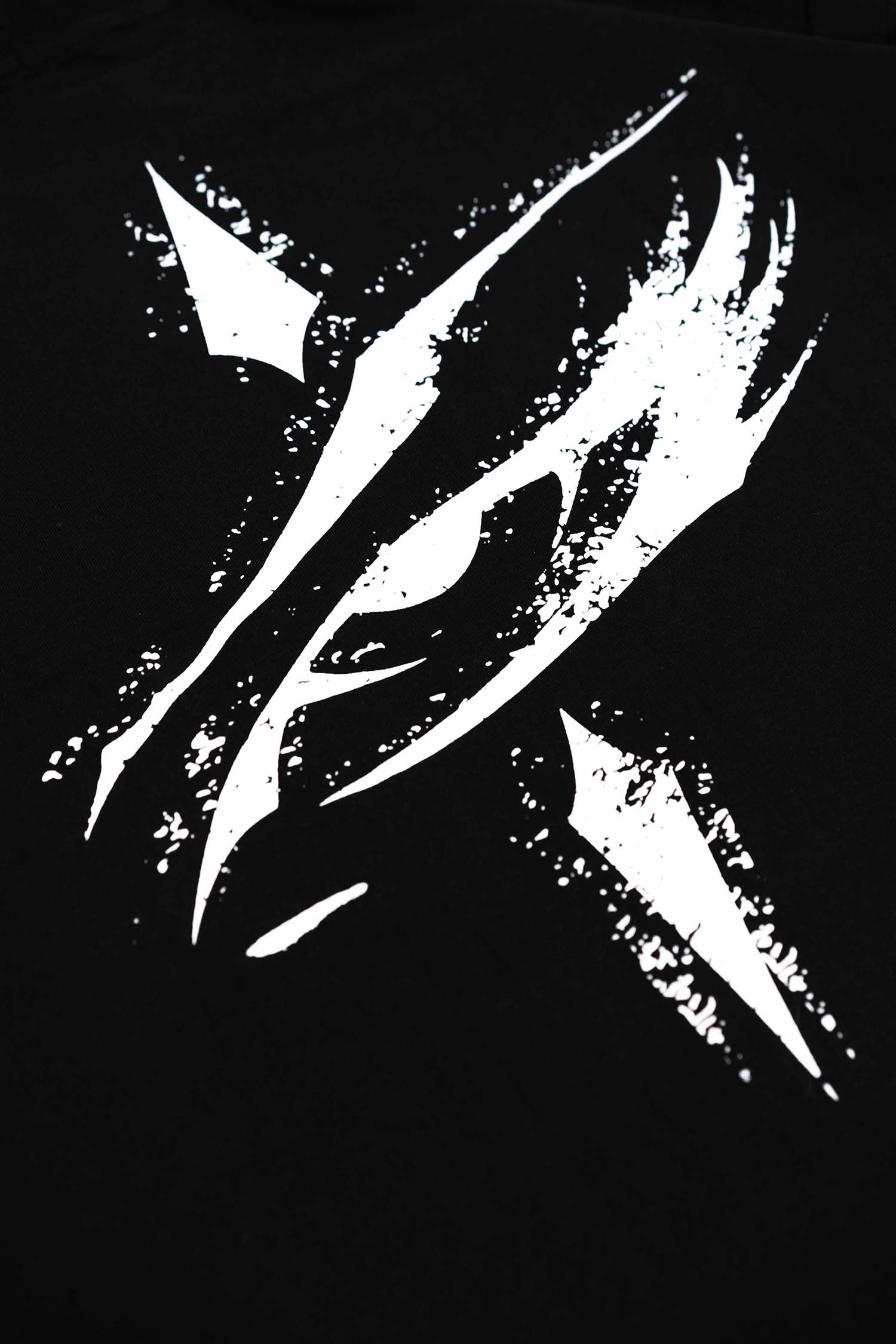 •A single white eye graphic, screen printed with particles fading out, symbolizing fading perception and awareness